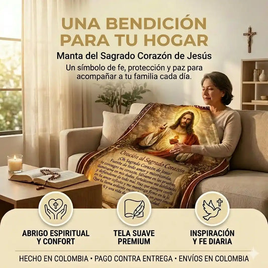 Manta Sagrado Corazon De Jesus 130x90 cm l Fe Y Paz Para Tu Hogar